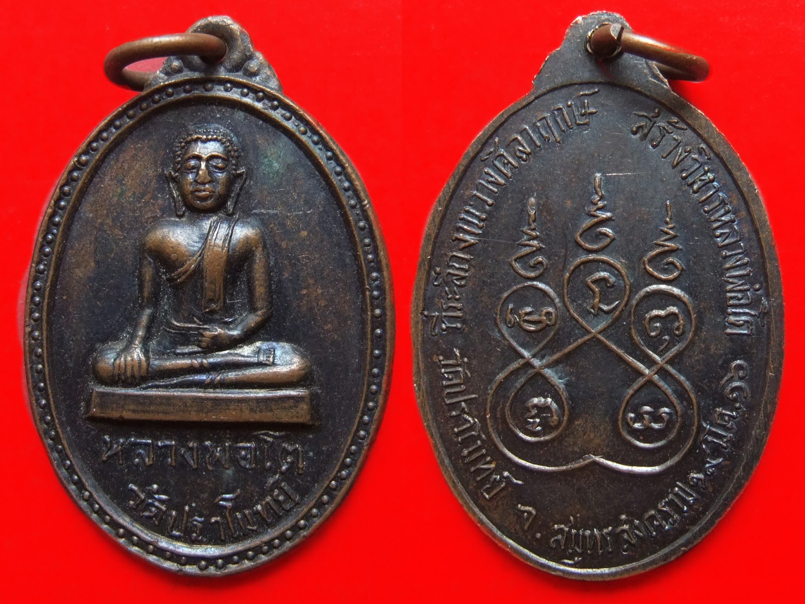 | Z13274 เหรียญหลวงพ่อโต เนื้อทองแดง วัดเจริญสุขาราม อำเภอบางคนที จังหวัดสมุทรสงคราม 600 บาท |